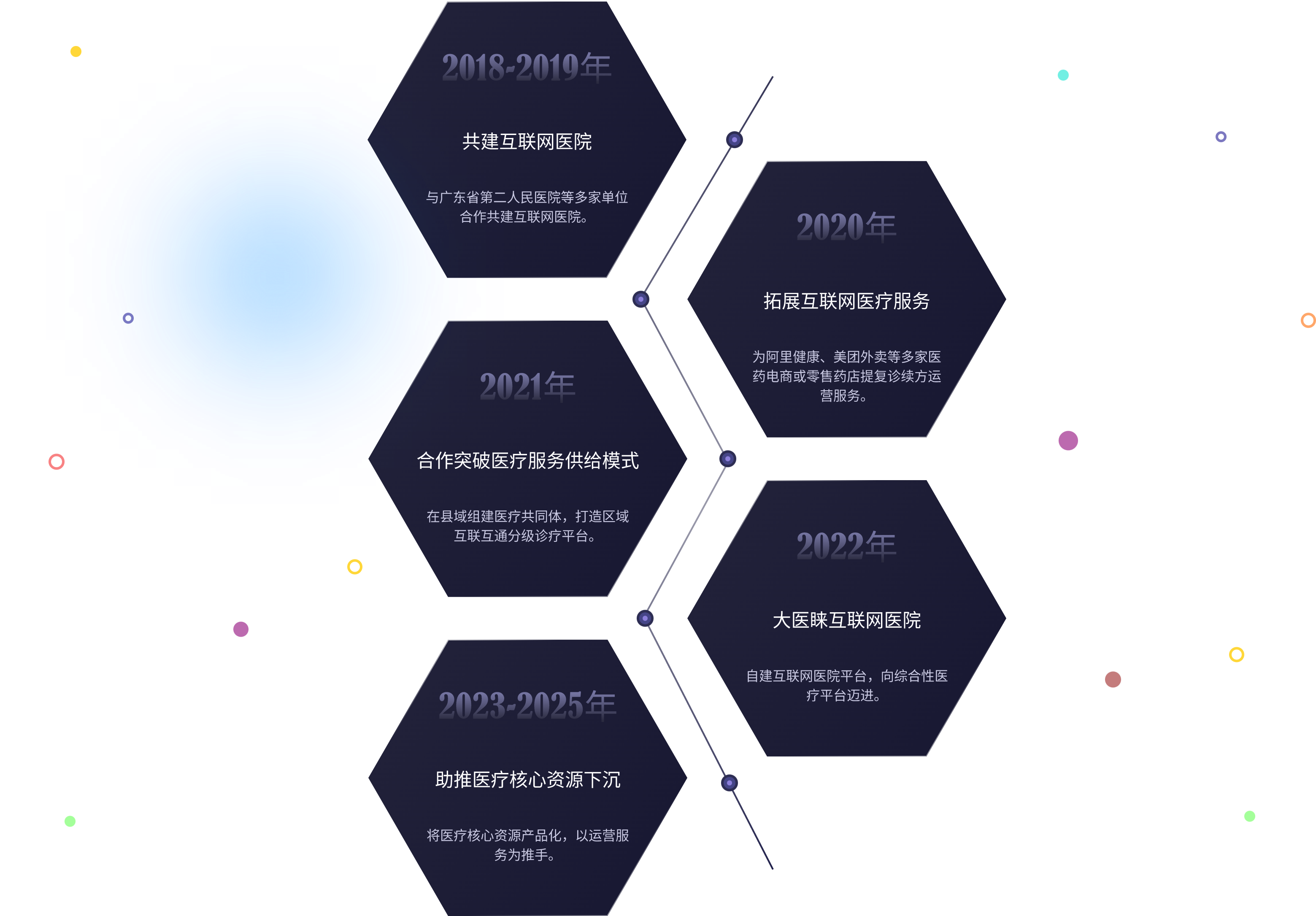 以“普及更廣泛、更便捷的醫(yī)療服務”為己任,聚焦數(shù)字醫(yī)療服務領域,致力于科技智慧創(chuàng)新醫(yī)療服務模式。全力打造“軟件開發(fā)+項目運營”的互聯(lián)網+醫(yī)療服務體系,為醫(yī)療健康行業(yè)提供數(shù)字化改造方案。以自建平臺為切入點,推動優(yōu)質醫(yī)療資源擴容下沉,實現(xiàn)提升人群健康獲得感與生活質量的目標。